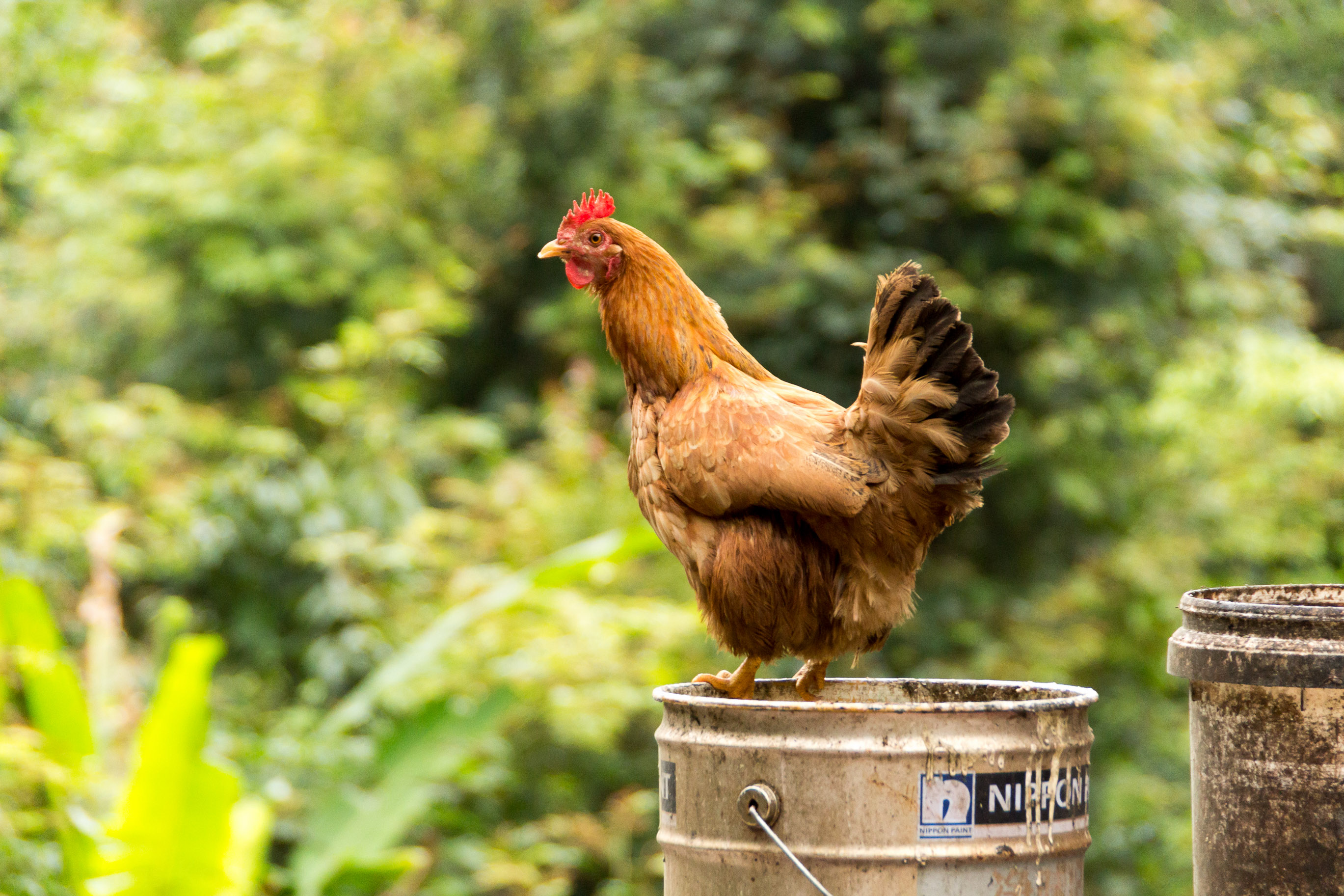 Huhn auf einem Eimer